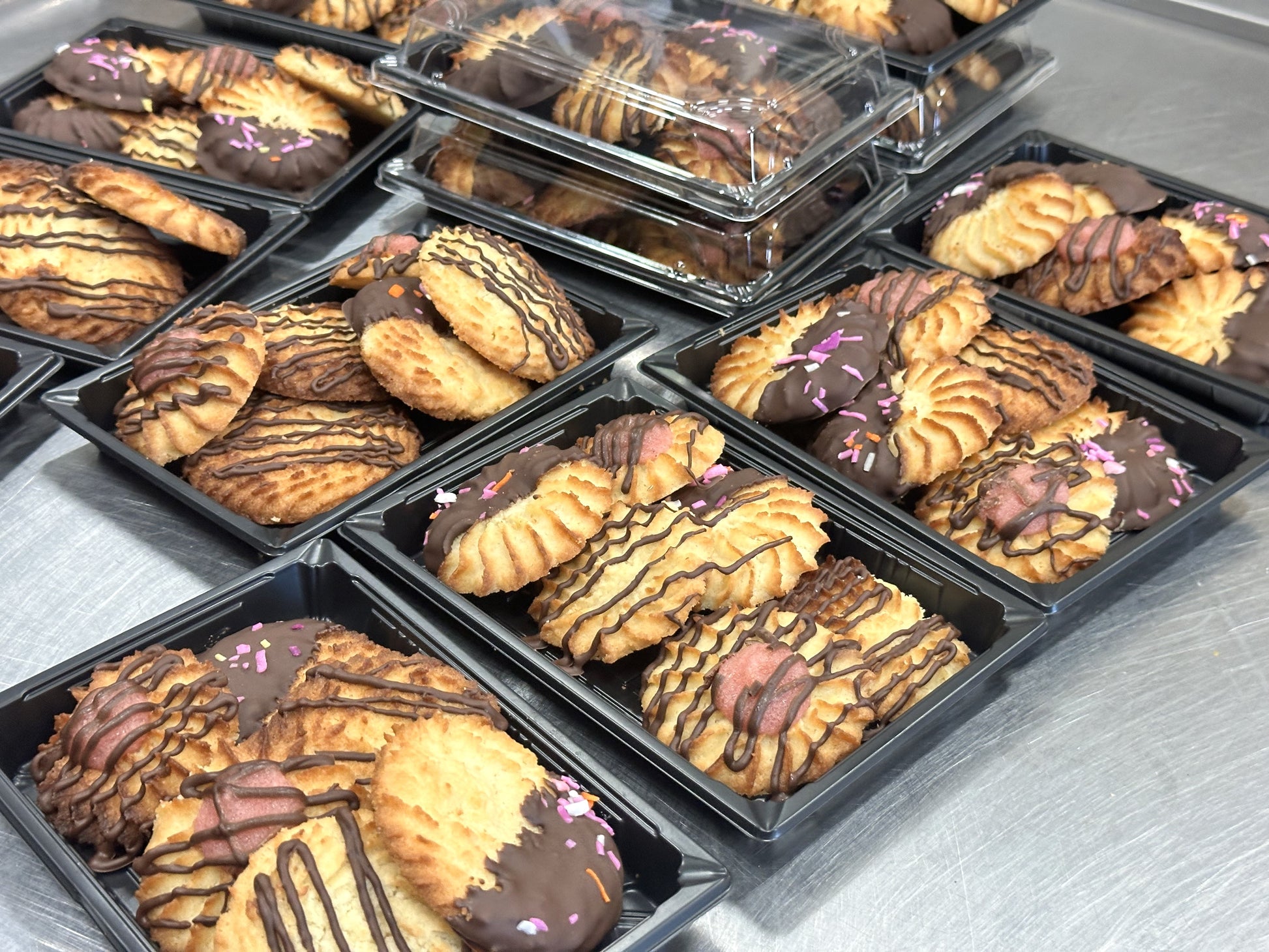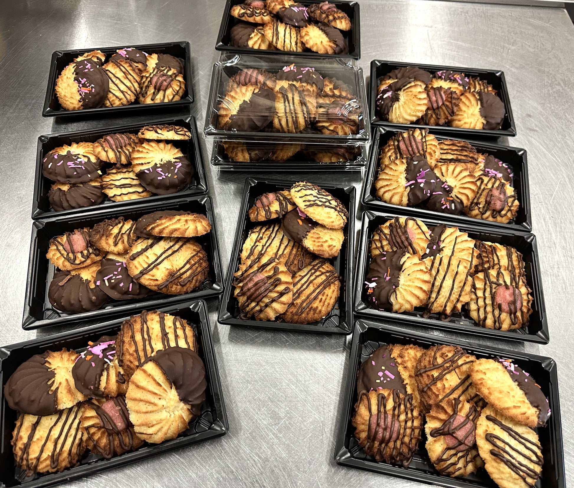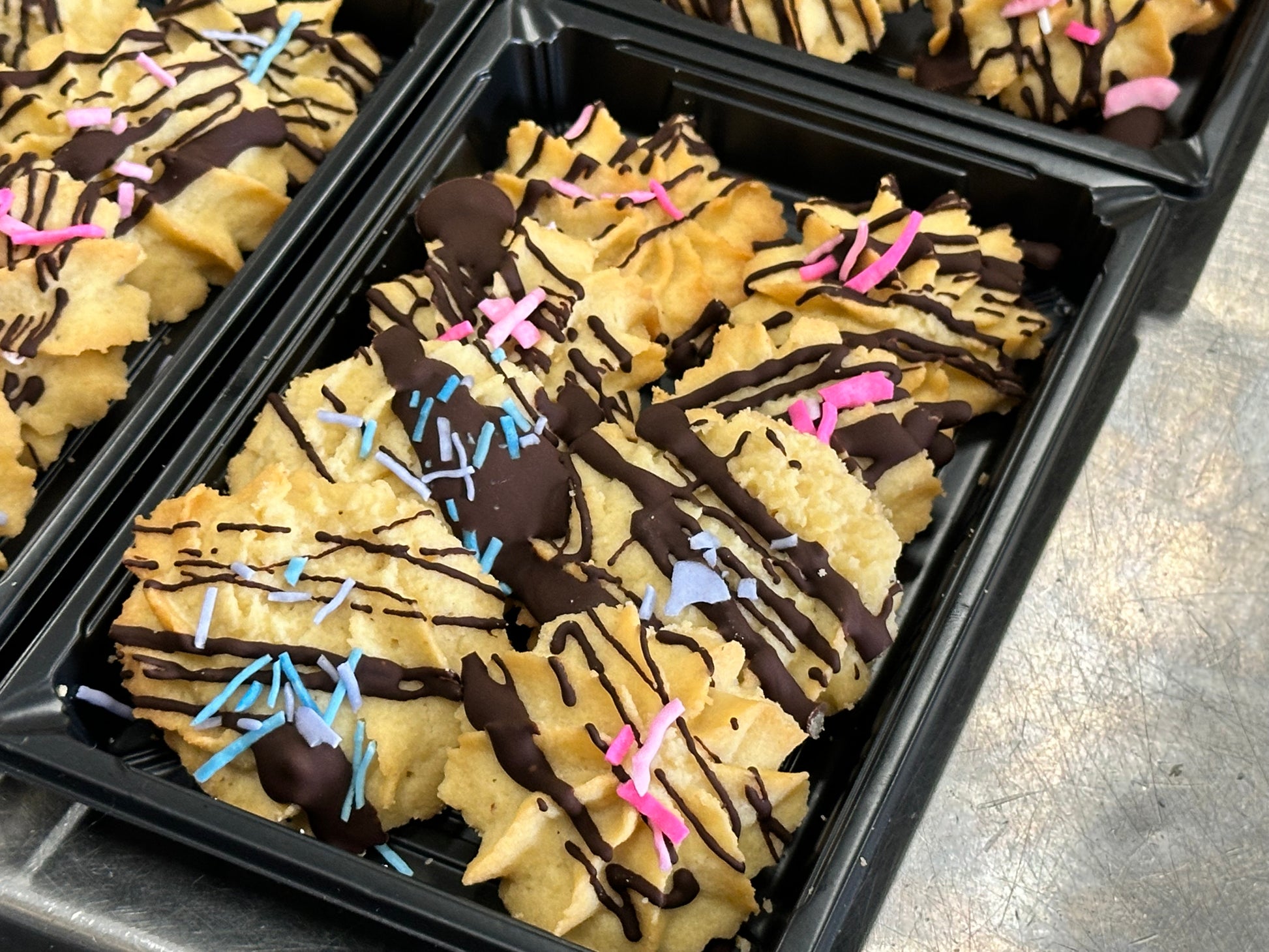 A holiday classic gets a healthy makeover! Homemade Danish Butter Cookies now come in a low carb version. Beautiful swirls of tender keto butter cookie dough baked to crisp perfection and decorated with stevia sweetened Coco Polo Chocolate (cookies can be decorated with chocolate, sprinkles or jam; if you are wanting something specific please call the shop). Cookies are sold in half dozen, dozen, or 2 dozen options. Cookies are packed in sets of 6 on food safe plastic containers.