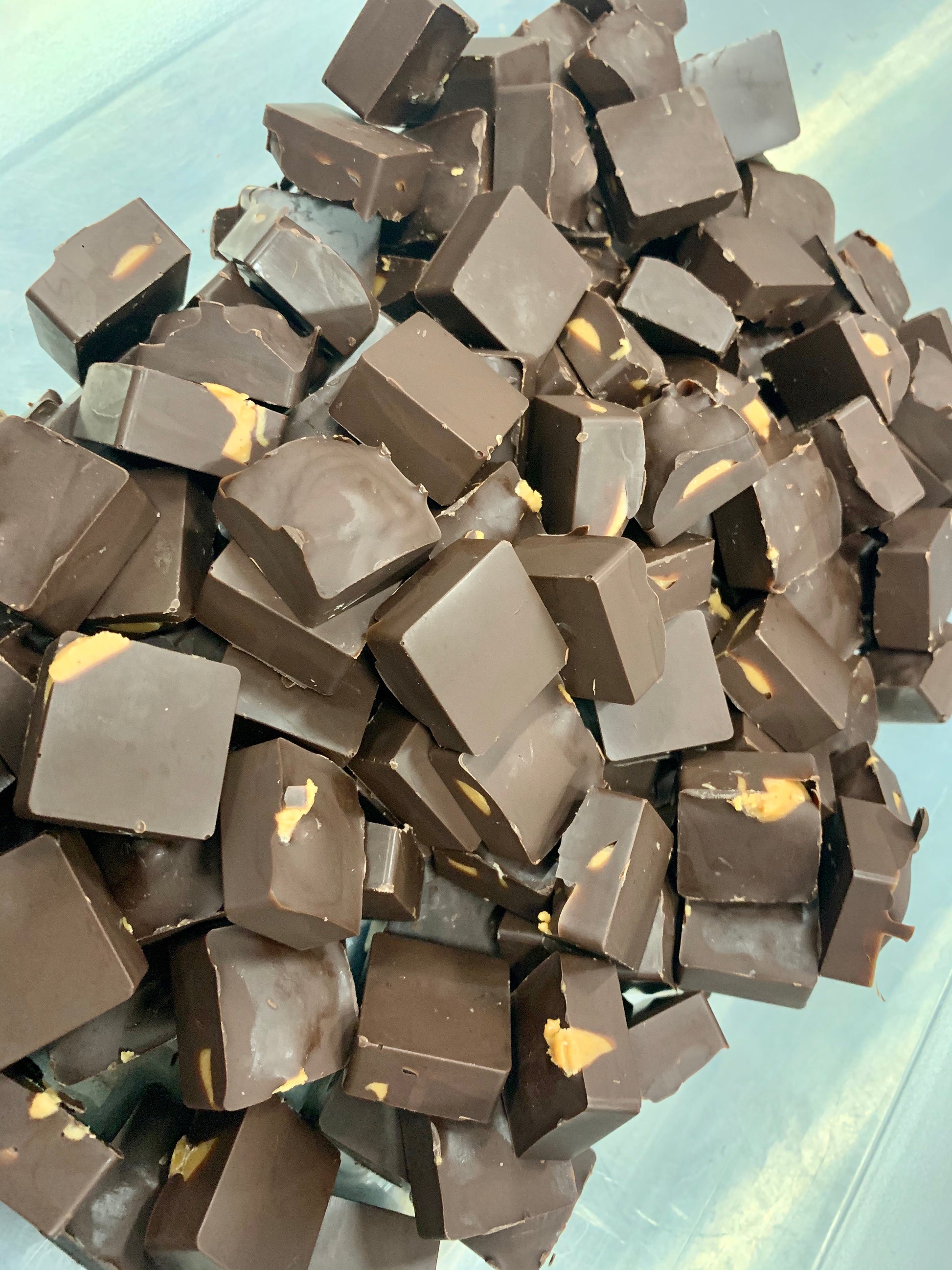 Keto Peanut Butter Squares, our version of Peanut Butter Cups. Creamy, sweetened Natural Peanut Butter enveloped in tempered sugar-free Milk Chocolate. We use Natural Peanut Butter and sweeten with Powdered Monk Fruit Sweetened - so delish. These bite-sized squares are less than 1g Net Carb!! Sold in 8 pieces in a clamshell container.
