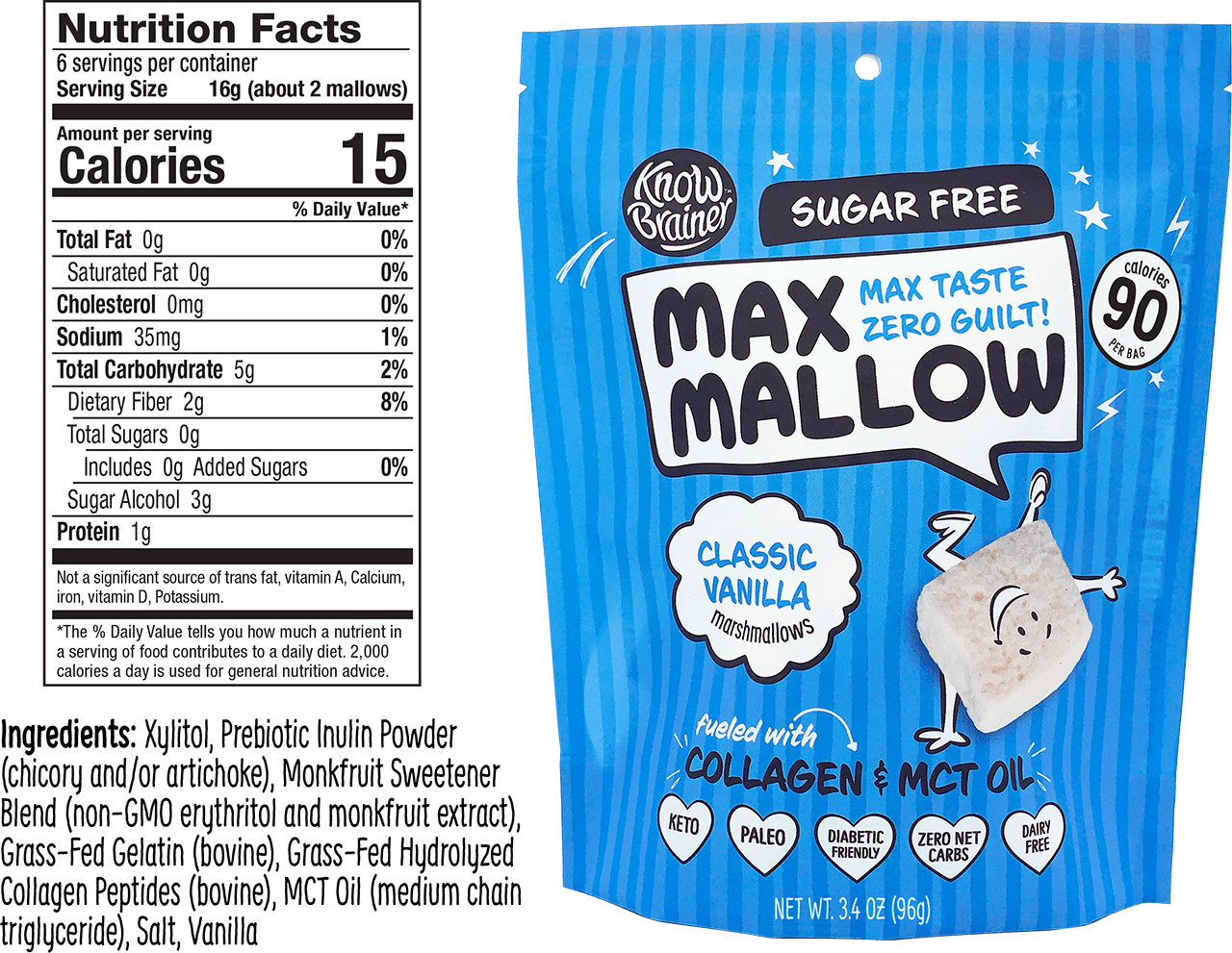 Max Mallow - Classic Vanilla, Keto Marshmallow & Collagen by Know Brainer Foods - Sugar Free Marshmallow Bites