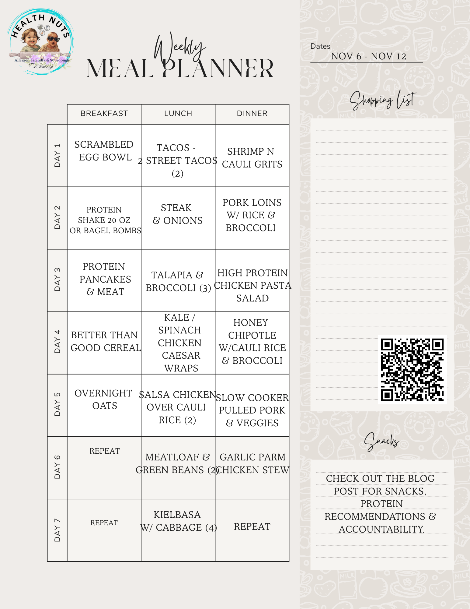 🥗 Week 1 – Lunch Menu (November)